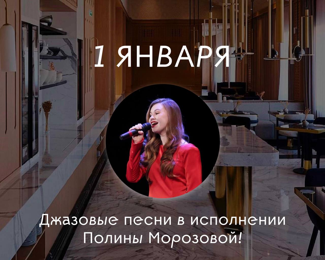 В этот вечер для вас выступит Полина Морозова – талантливая джазовая вокалистка с мягким, глубоким голосом и тонким чувством стиля.