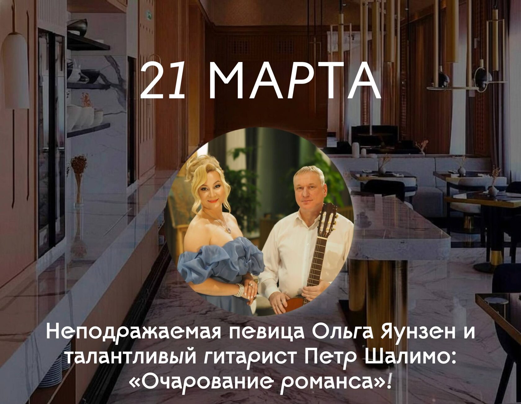 В этот вечер в «Проун» прозвучат нежные и страстные мелодии в исполнении очаровательной Ольги Яунзен и виртуозного гитариста Петра Шалимо.