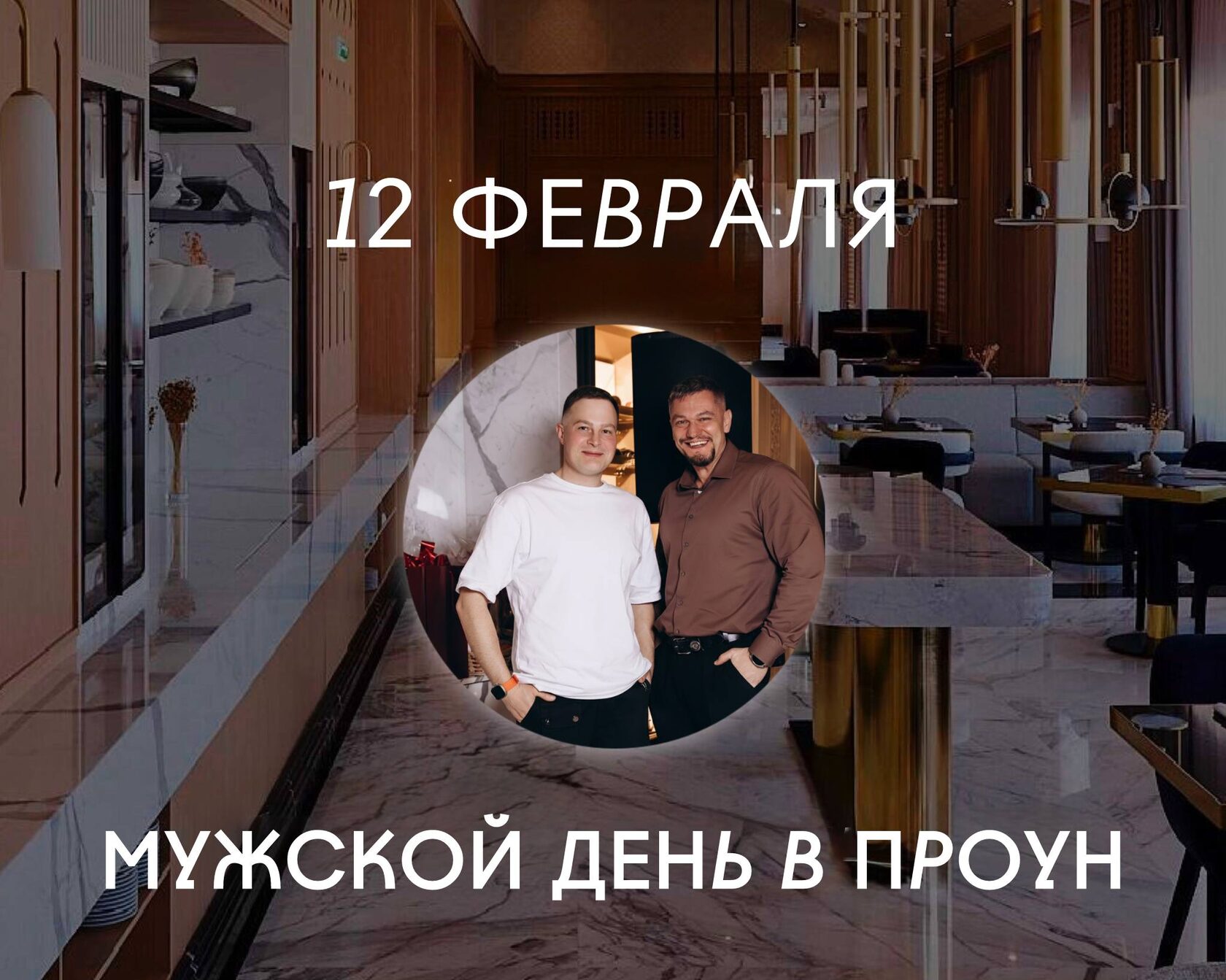 В ресторане «Проун» для мужских компаний от 3 человек –20% на всё меню a la carte с 12:00 до 23:00.