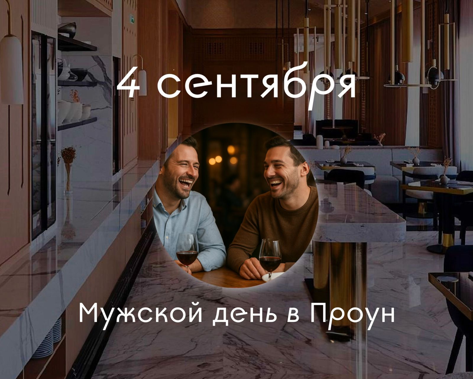 если вы приходите мужской компанией от 3-х человек, вас ждёт скидка 20% на всё меню a-la-carte и винную карту.