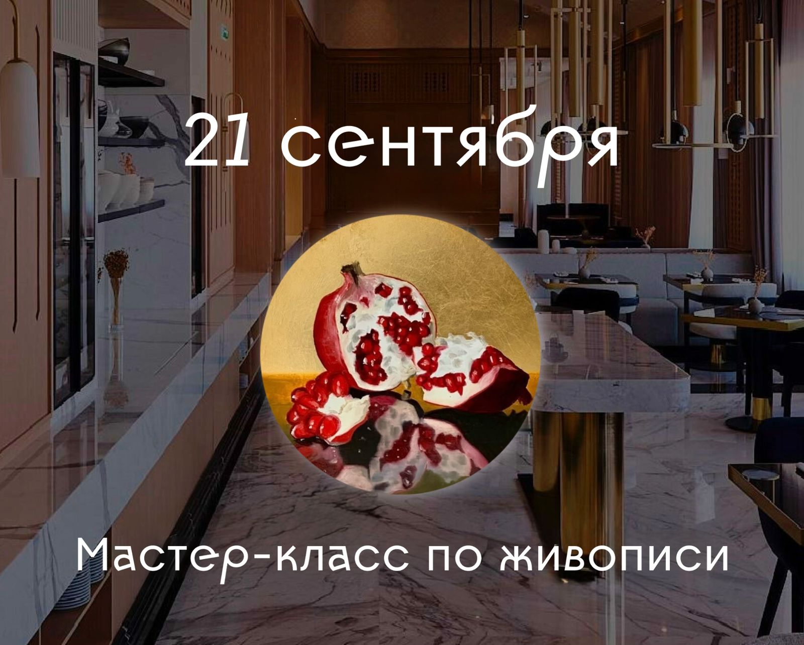 Мастер-класс по живописи в ресторане – пишем гранаты с поталью и наслаждаемся лёгкими блюдами от ресторана!