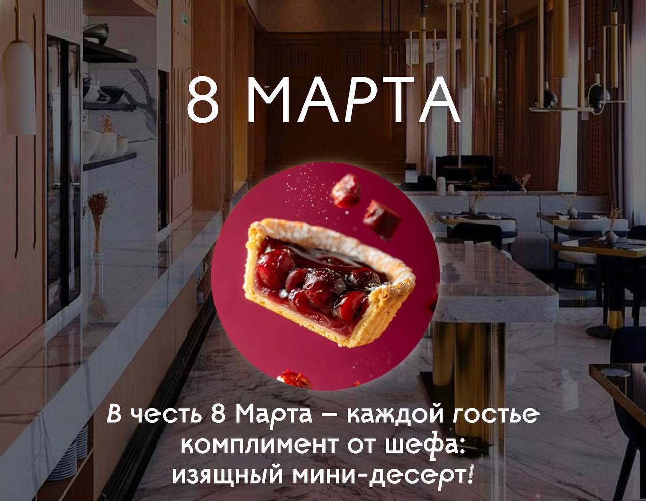 В честь 8 Марта каждая гостья ресторана «Проун» получает комплимент от шефа – изящный мини-десерт 🍰, чтобы сделать ваш праздник ещё слаще и ярче.